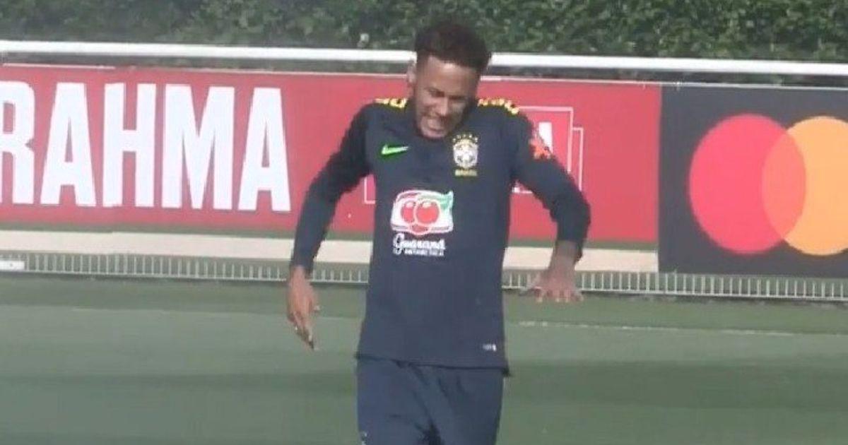 На тренировке внезапно включили полив газона. Реакция Неймара