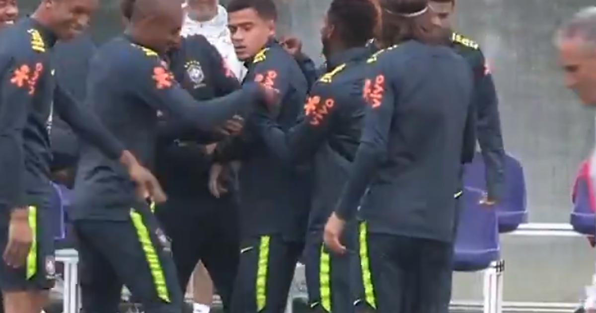 Love the atmosphere during Brazil training sessions! Poor Coutinho though 😂#FechadoComASeleção pic.twitter.com/DxKIs2gEBH
