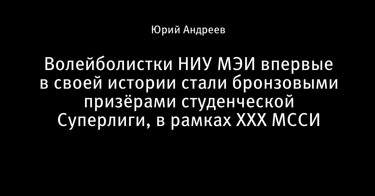 Волейболистки НИУ МЭИ впервые в своей истории стали бронзовыми призёрами студенческой Суперлиги, в рамках ХХХ МССИ, обыграв в волевой встрече принципиальных оппоненток из МГУ им. М.В. Ломоносова
