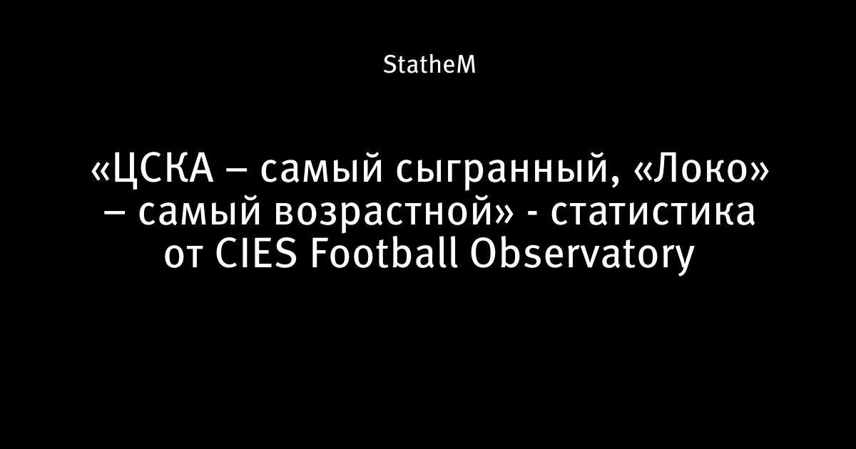 «ЦСКА – самый сыгранный, «Локо» – самый возрастной» - статистика от CIES Football Observatory