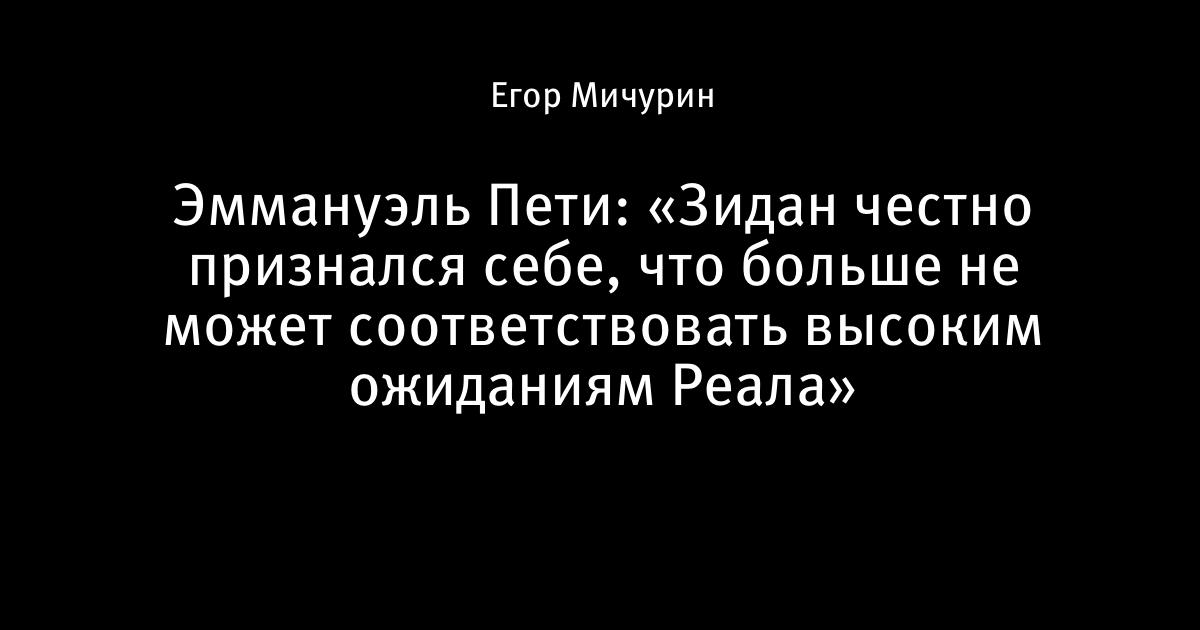 Эммануэль Пети: «Зидан честно признался себе, что больше не может соответствовать высоким ожиданиям Реала»
