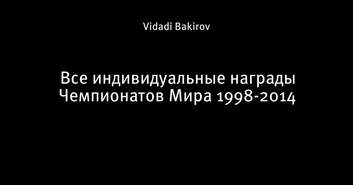 Все индивидуальные награды Чемпионатов Мира 1998-2014