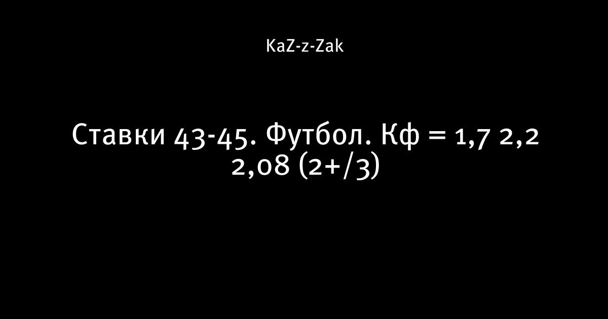 Ставки 43-45. Футбол. Кф = 1,7 2,2 2,08 (2+/3)