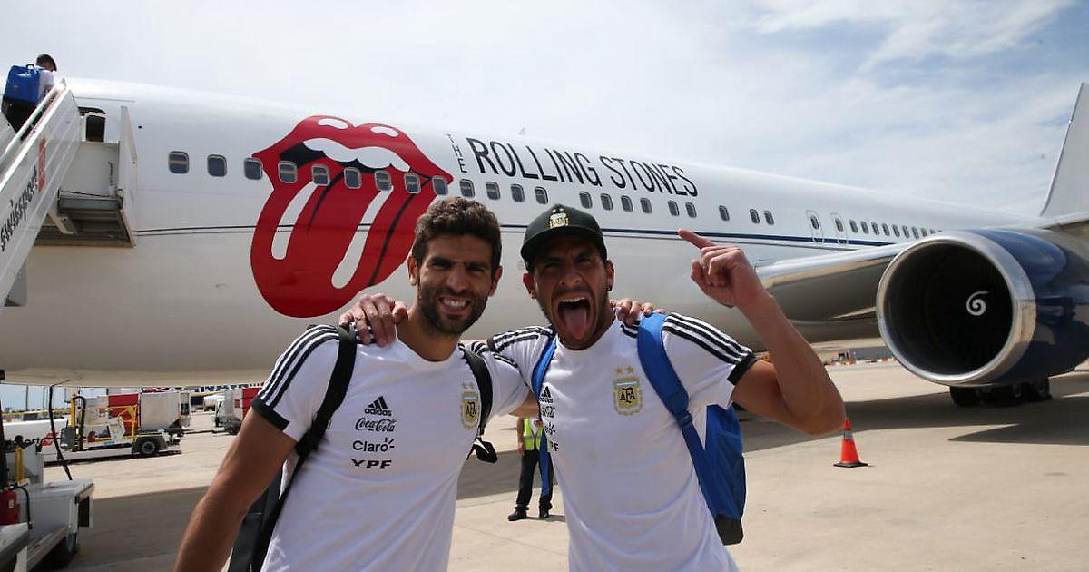 Сборная Аргентины готовилась к ЧМ в Испании. Команда тренировались в Барселоне, а сегодня, 9 июня, они отправились в Россию. На самолете. На самолете с символикой Rolling Stones!