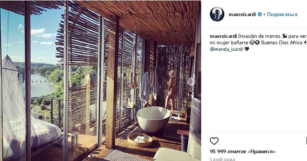 Пару дней назад Икарди, пытаясь показать, как обезьяны за ним с женой подглядывают в окна, "случайно" опубликовал в инстаграме фото обнаженной жены, которая готовилась принять душ.