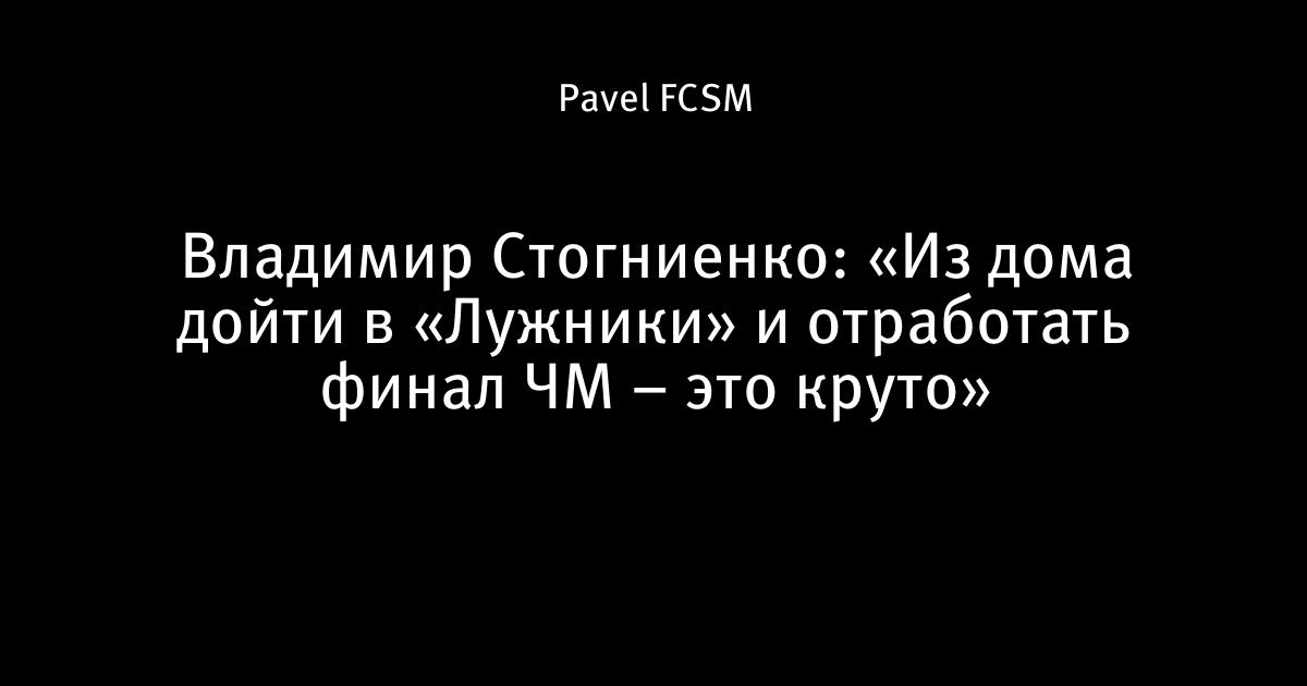 Владимир Стогниенко: «Из дома дойти в «Лужники» и отработать финал ЧМ – это круто»
