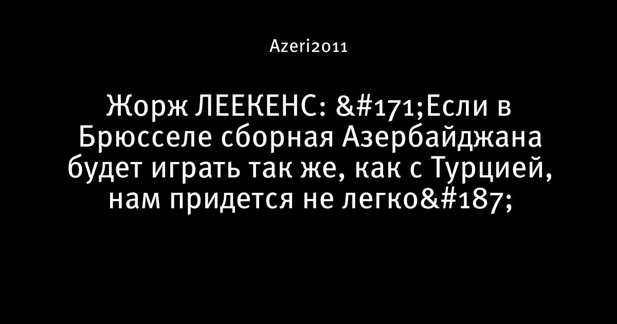 «Какая у меня информация о сборной Азербайджана? Видел игры вашей команды против Германии, Австрии и Турции, - цитирует Леекенса 1news.az. – Конечно, матч с Турцией произвел самое сильное впечатление. Если в Брюсселе сборная Азербайджана будет играть именно так, но нам придется не легко. Известно ли мне, что сборная Азербайджане крайне слабо выступает в гостевых матчах? Нет. Многие команды дома играют лучше, чем в гостях. Кто заменит дисквалифицированного Венсана Компани? Пока точно не знаю. Но у нас есть игроки. В частности, Николас Ломбертс. Окончательно с составом я, скорее всего, определюсь в понедельник»