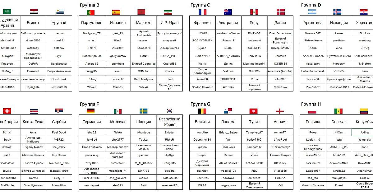 А дальше по классике, все как на реальном ЧМ. Команды будут заявлены в турнир по группам на нашем любимом сайте. 14.06.18 турнир стартует вместе с первым матчем. А далее группы, плейофф и может даже серия пенальти будет! Начисление очков и прочее как обычно на спортсе, при равенстве очков смотрим регламент для h2h турниров.