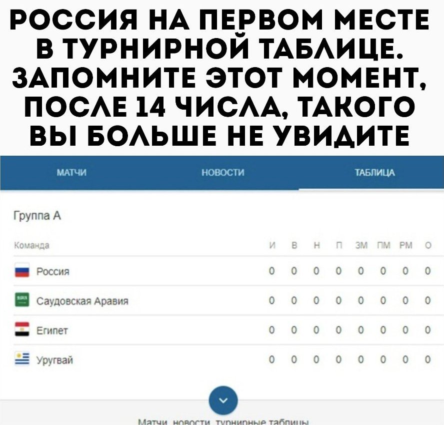 Victor311 Что за бред. ЧМ-2010, хозяева сборная ЮАР из группы не вышла. Один дебил ляпнул, второй повторил! 11 июня 2018, 18:28 +135 Ответить