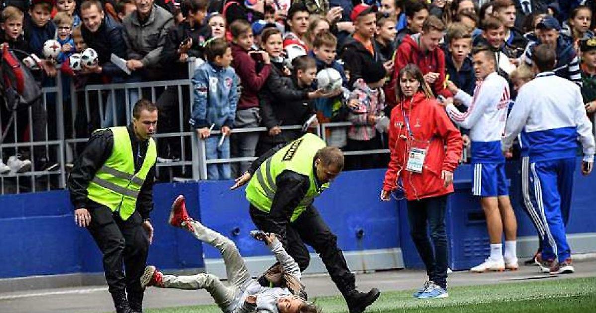 Однако стюарды не играли в игры с подростками, которые попытались выбежать на поле во время тренировки национальной сборной на «ВЭБ Арене» в Москве.