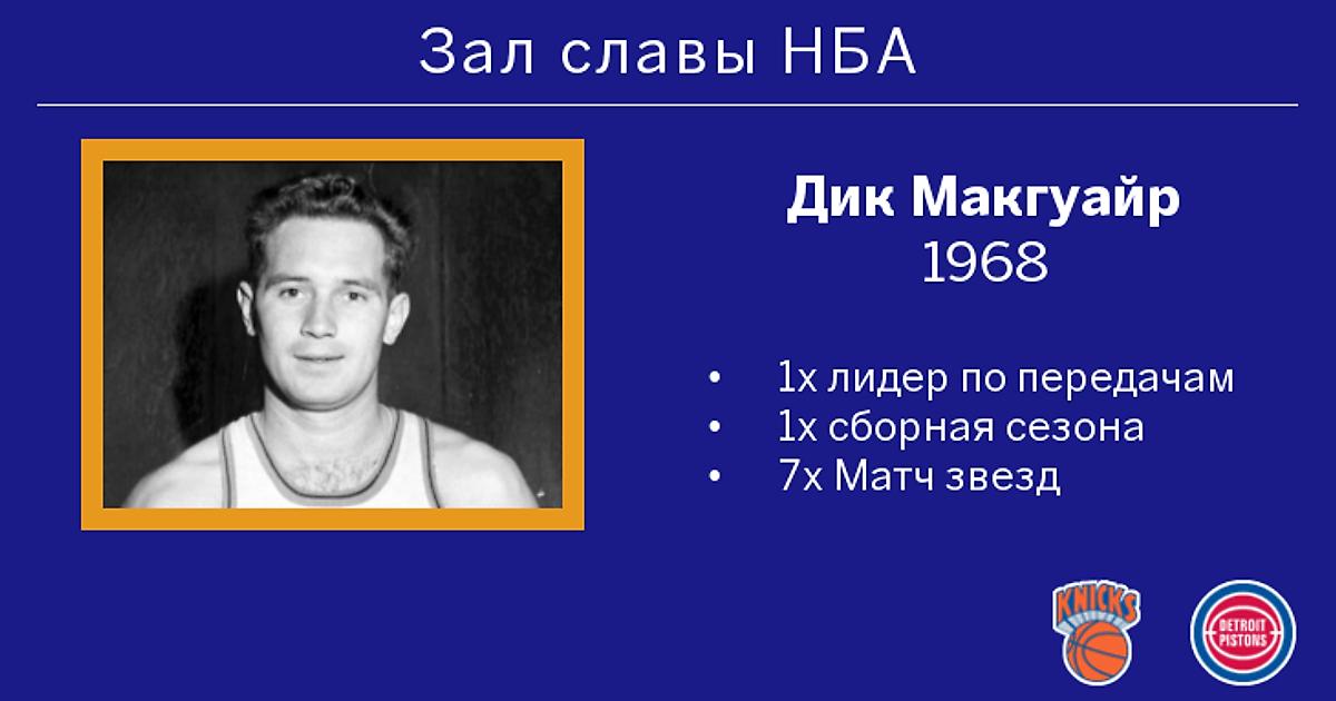 Защитник «Нью-Йорк Никс» Дик Макгуайр – в Зале славы НБА.