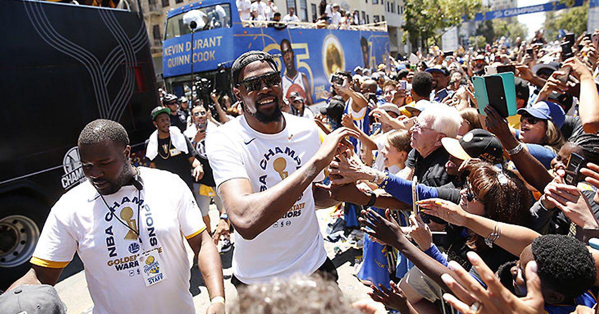 Шутки про Дюрэнта, голый Ник Янг и троллинг Леброна. «Голден Стэйт» оторвался на параде