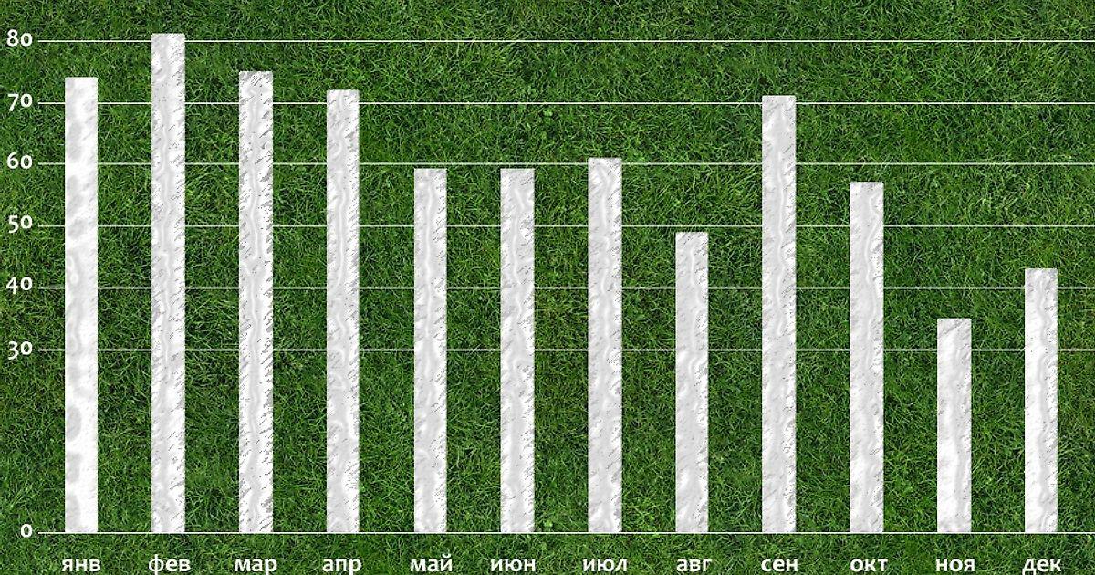Похожая ситуация в РФПЛ и европейских топ-лигах. Разницу между месяцами связывают с тем, что в детском и юношеском футболе команды делятся по дате рождения. Детям, рождённым в начале года, развиваться легче. Из-за этого случаются намеренные "переписывания" игроков с декабря на январь.