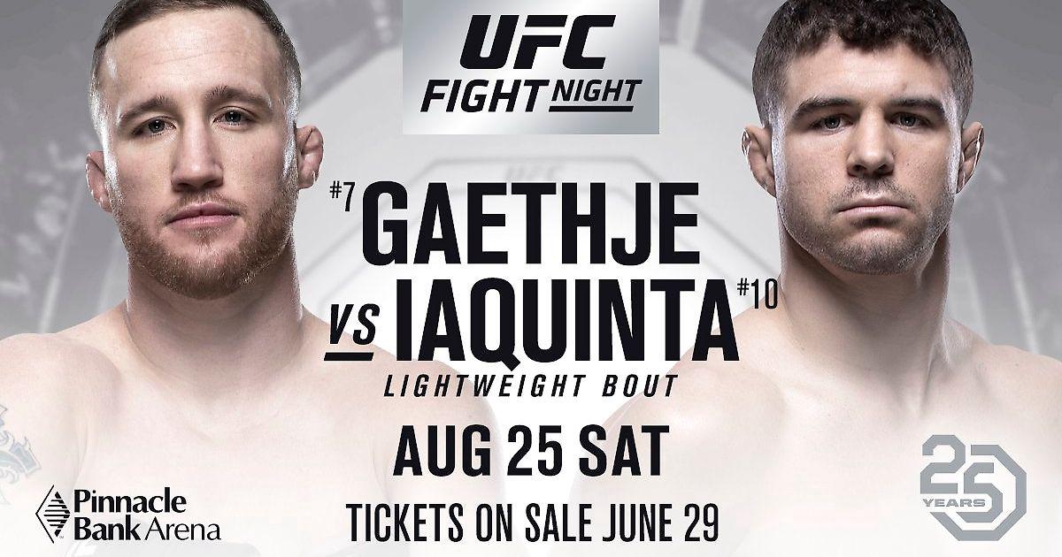 Поединок между американскими легковесами Джастином Гэтжи и Элом Яквинтой состоится 25 августа на турнире UFC Fight Night 135 в Линкольне, штат Небраска, США.