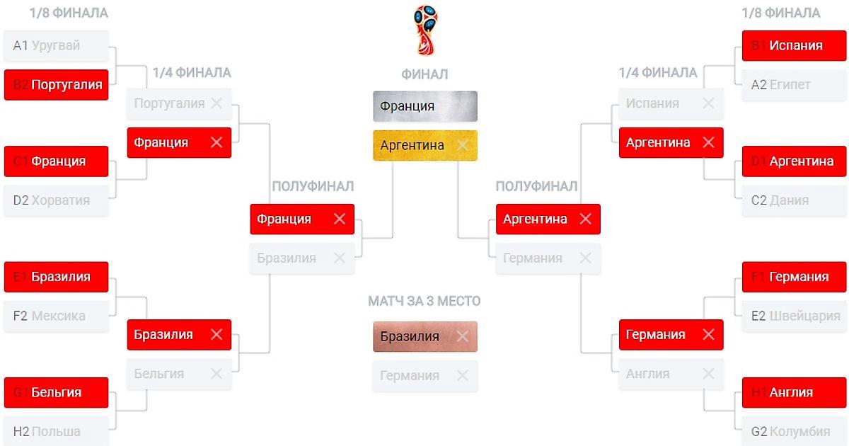 Возьмем за основу баланс в 100 тысяч рублей и вложим их в ставки на события чемпионата мира.