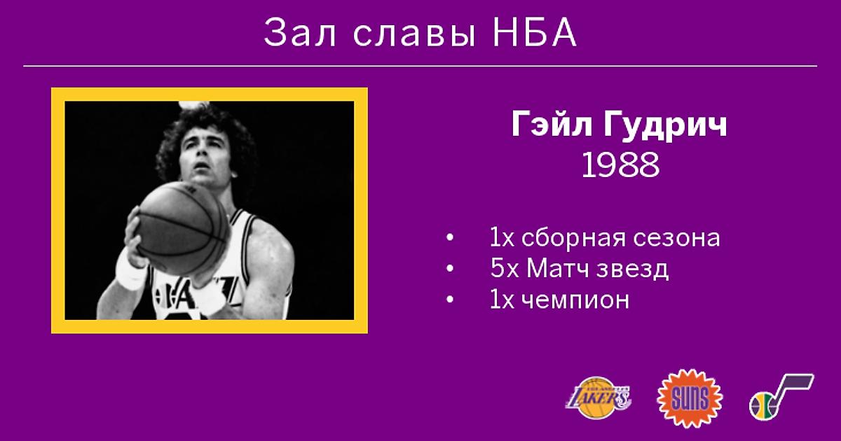 Защитник «Лос-Анджелес Лейкерс» Гэйл Гудрич – в Зале славы НБА.