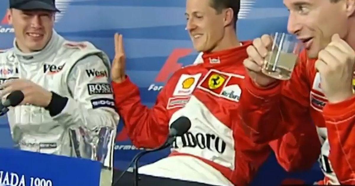 Инстаграм-аккаунт formulaoneaccess опубликовал в хорошем качестве тот самый момент, когда на пресс-конференции после квалификации к Гран-при Канады 1999 года пилот «Феррари» Эдди Ирвайн кинул полотенцем в опередившего его на 0,1 секунды гонщика «Макларена» Мику Хаккинена. Затем вслед в финна отправилась и вода из бокала необузданного ирландца.