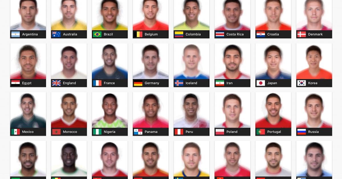 С помощью компьютерной программы были составлены усредненные фотографии футболистов ЧМ-2018. У сборных Франции, Англии и Саудовской Аравии среднее лицо выглядит не совсем так, как у типичного представителя населения страны.