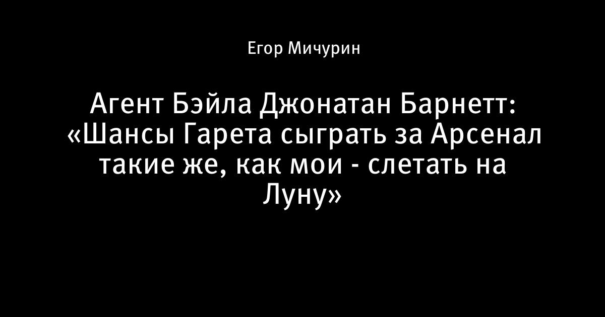 Агент Бэйла Джонатан Барнетт: «Шансы Гарета сыграть за Арсенал такие же, как мои - слетать на Луну»