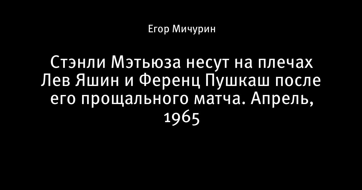 Стэнли Мэтьюза несут на плечах Лев Яшин и Ференц Пушкаш после его прощального матча. Апрель, 1965