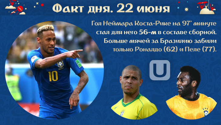 22 июня 2018, 18:03 Факт дня. 22 июня Подпишись на канал в Telegram: @bet_u Автор BETU Этот пост опубликован в блоге на Трибуне Sports.ru. Присоединяйтесь к крупнейшему сообществу спортивных болельщиков! Другие посты блога Официальный блог BETU ПСЖ Пеле Сборная Бразилии по футболу Неймар чемпионат мира Роналдо ЧМ-2018 FIFA