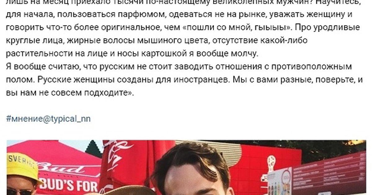 Ну что сказать. Насчёт шур-мур не знаю. В этом я профан. Но вот то, что даже в комментариях ради футбола - бабу убить готовы, это факт. Один как-то написал: не думай, что если ты девушка, то тебя не отпиздят. И про грубиянов с алкогольным и прочим амбрэ. Даже отцы такие бывают. Мой, например. А вообще, дебилов везде хватает. Независимо от национальности.