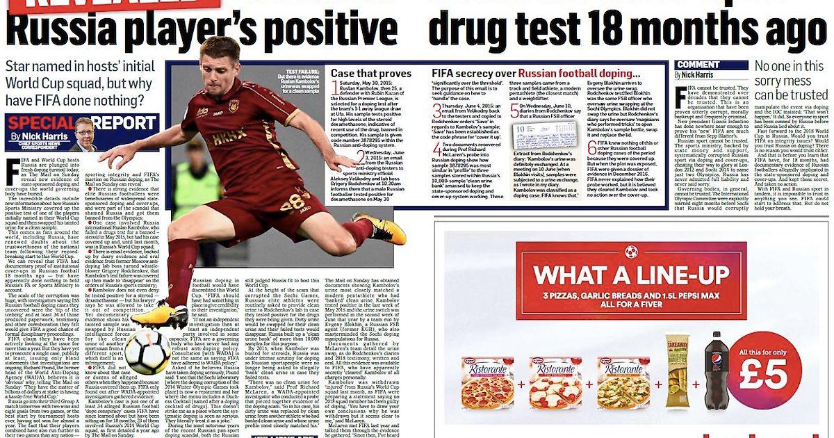 Накануне в британском издании Mail on Sunday опубликовали материал Харриса, в котором он утверждал, что ФИФА якобы знала о "нарушении в России антидопинговых правил". В своей статье журналист опирался на мнения бывшего главы WADA Ричарда Паунда и главы независимой комиссии WADA Ричарда Макларена.