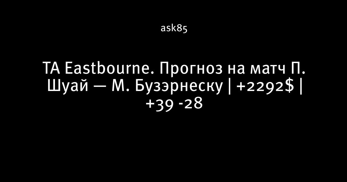 TA Eastbourne. Прогноз на матч П. Шуай — М. Бузэрнеску | +2292$ | +39 -28