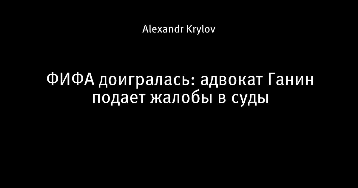 ФИФА доигралась: адвокат Ганин подает жалобы в суды