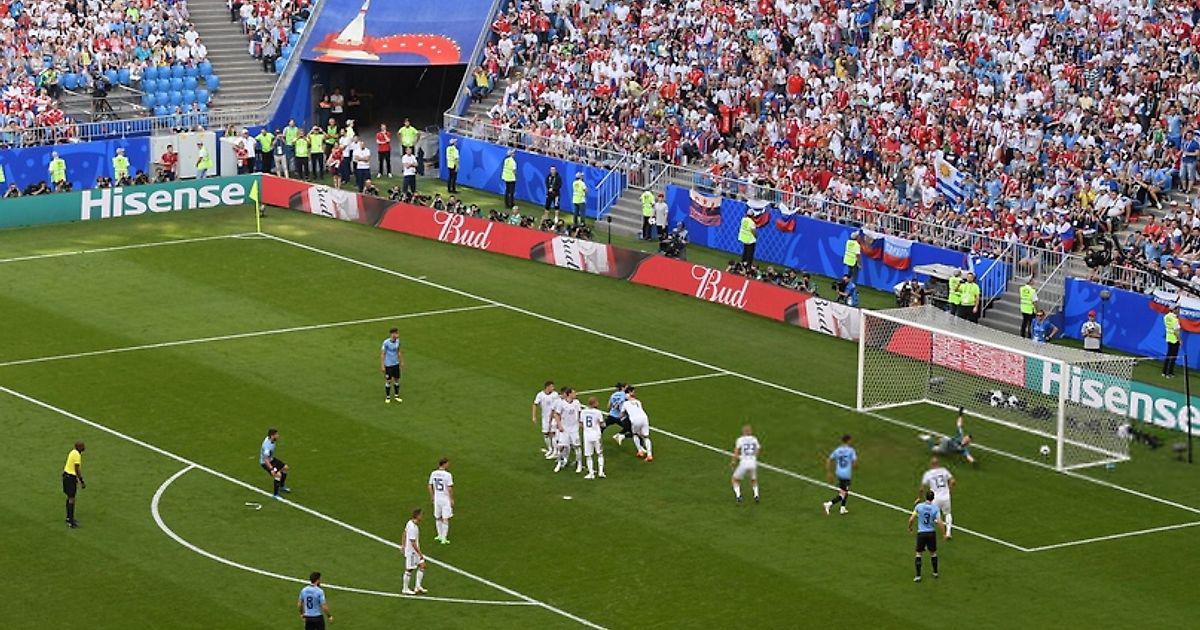 Российские защитники справлялись со своей задачей до 90 минуты, пока при розыгрыше углового уругвайцев не доглядели за Эдинсоном Кавани. Итог — разгромное поражение сборной России в три мяча и дисквалификация Игоря Смольникова.
