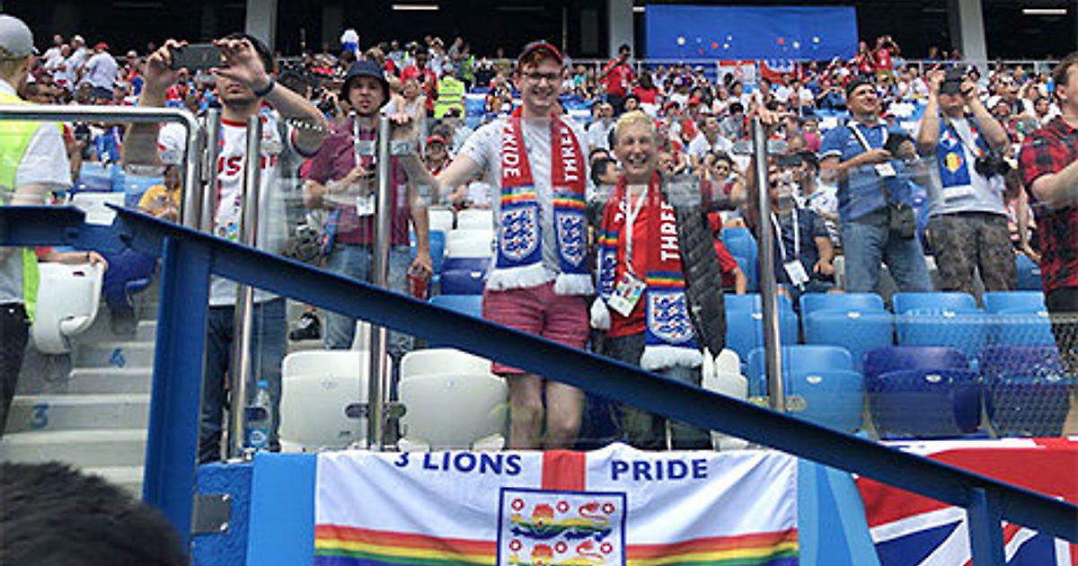 Мы показываем нашу причастность к ЛГБТ-сообществу только на стадионах, не на улицах городах. ФИФА, федерация футбола России и Алексей Смертин сказали: «На стадионах будет безопасно». Поэтому мы ограничились территорией арен. Но и в Волгограде, и в Нижнем Новгороде у нас были баннеры и шарфы «Трех львов» с радугой. На обоих матчах общение с болельщиками было фантастическим – как с англичанами, так и с русскими. Люди подходили, делали селфи с баннером, пожимали нам руки. Они прекрасно понимали, что значит этот баннер. Все это стало для нас настоящим откровением.