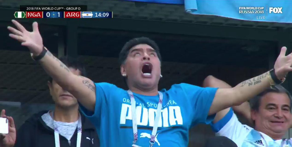 Лео наконец-то забил на ЧМ, и сделал это в решающем матче за выход в плей-офф. На трибунах «Крестовского», конечно же, топит за своих Диего Марадона.