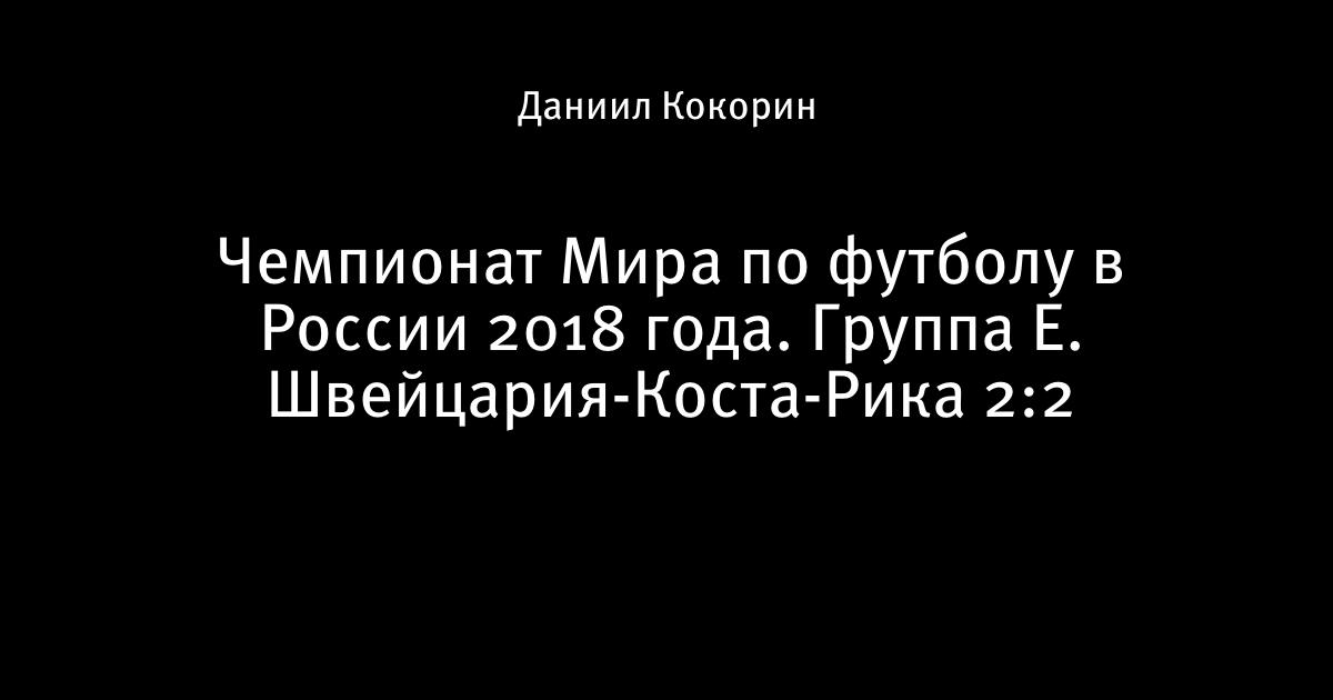 Чемпионат Мира по футболу в России 2018 года. Группа E. Швейцария-Коста-Рика 2:2. Боевая ничья! Сборная Швейцарии сыграв в ничью со сборной Коста-Рикой вышла в 1/8 финала со второго места и сразится со сборной Швеции. Должок за хоккей, надеюсь все поняли.