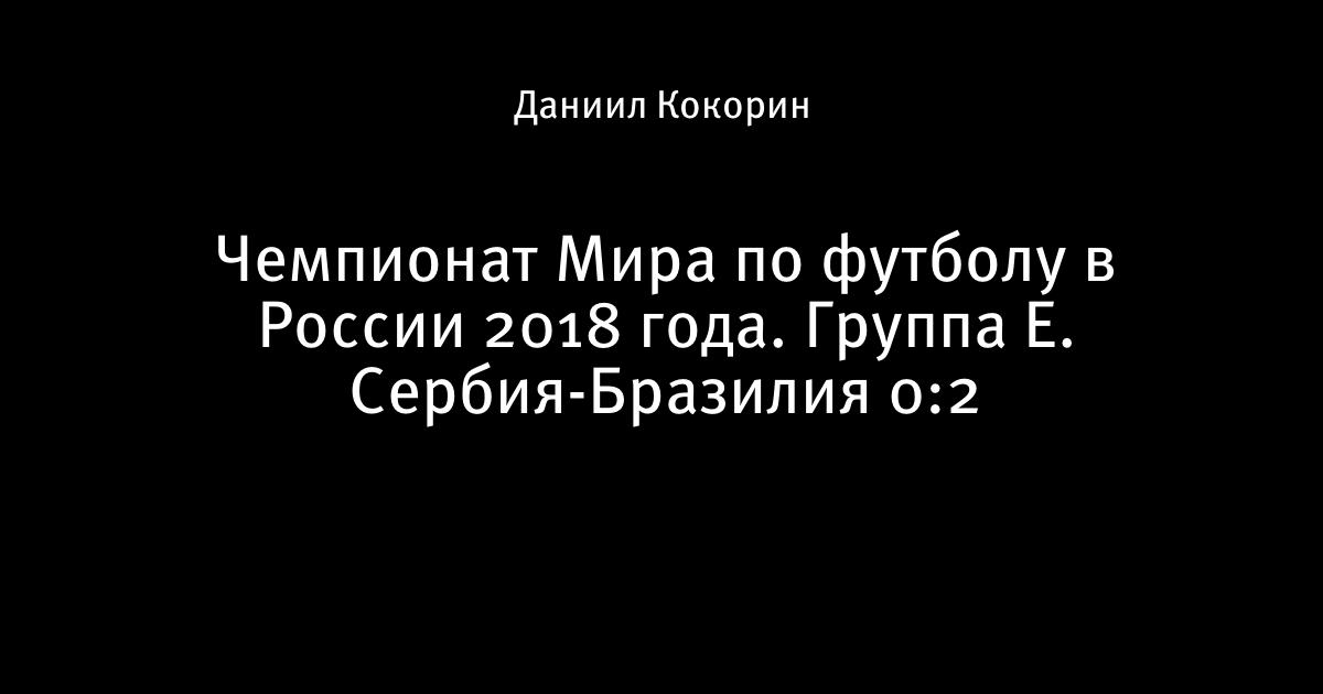 Чемпионат Мира по футболу в России 2018 года. Группа E. Сербия-Бразилия 0:2. Сборная Бразилии одержала трудную, но заслуженную победу на классе над сборной Сербии и вышла с первого места в 1/8 финала, где встретится со сборной Мексики. Ну а сборной Сербии большое спасибо за игру и турнир.