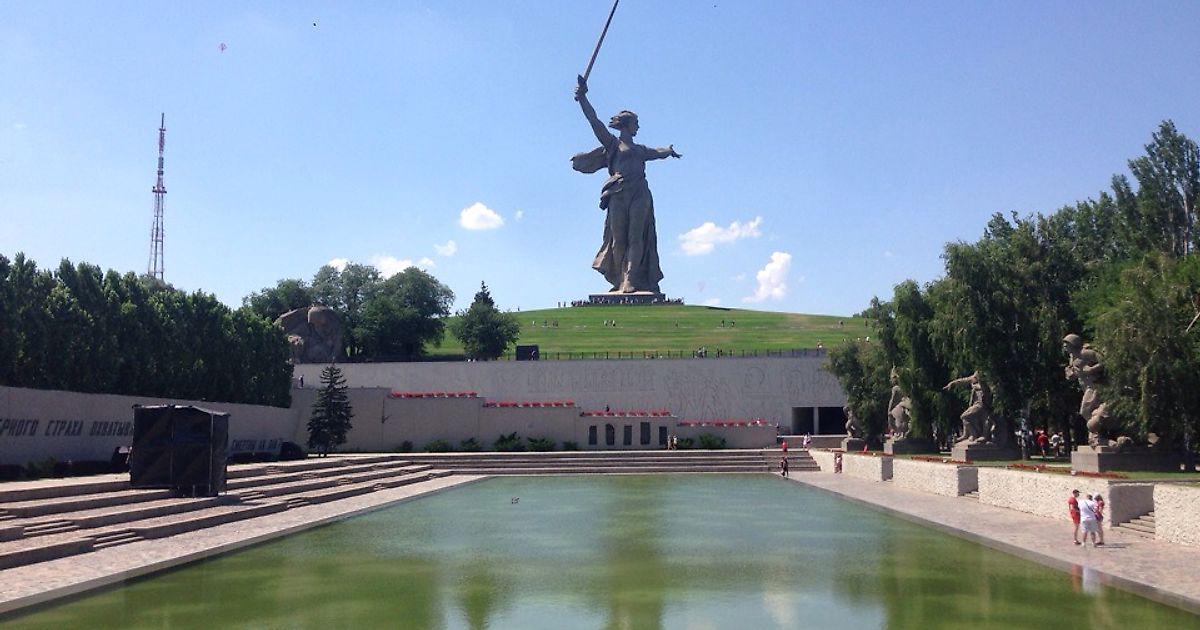Направляюсь к стадиону. Часть людей гуляет на Мамаевом кургане, другая - у фонтана неподалёку от стадиона. По фонтану бегают и дети, и взрослые. Как и везде, болельщики фотографируются друг с другом. Японцы пользуются популярностью. Они словно устроили показ мод: кто одет в костюм самурая, кто в костюм гейши.