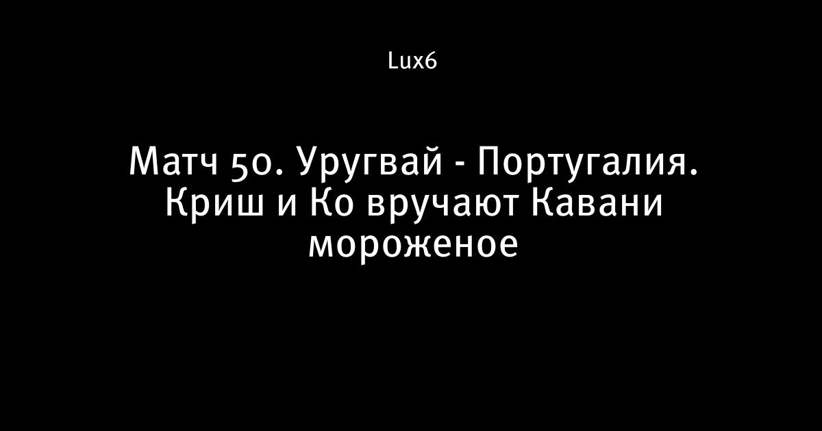 Уругвай не проиграет, Португалия в лучшем случае дотянет до доп времени. Кавани идет за своим мороженым. Криш и Ко попробуют не дать, но у них не получится.