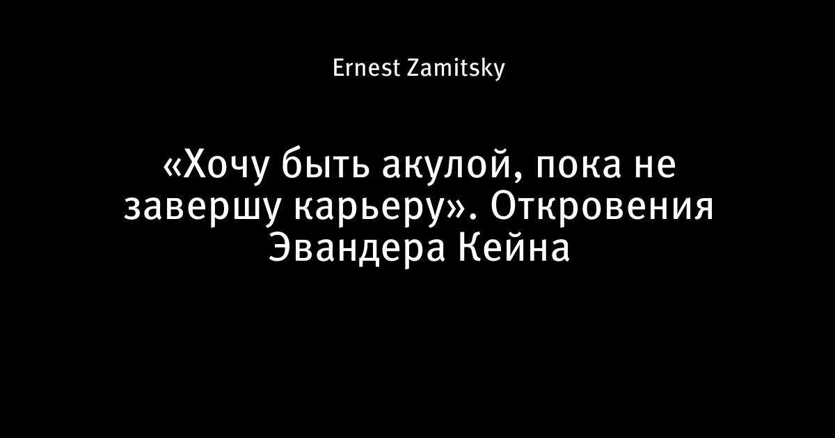 «Хочу быть акулой, пока не завершу карьеру». Откровения Эвандера Кейна