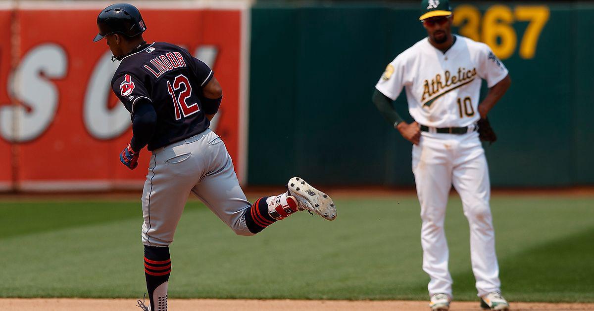 "Окленд Атлетикс"-"Кливленд Индианс" 3:15.В 8 иннинге гости набрали 8 очков и не оставили хозяевам шансов спастись.В 4 иннинге Мэтт Олсон выбил дабл (14) и Крис Дэвис приносит хозяевам одно очко.В 5 иннинге Хосе Рамирес выбил дабл (21) и Франсиско Линдор выводит гостей вперёд.В 6 иннинге Джейсон Кипнис выбил дабл (16),а Йондер Алонсо увеличивает отрыв гостей.В 7 иннинге Франсиско Линдор и Эдвин Энкарнасьон выбили по хоум-рану (21 и 20).В 8 инненге после ошибки питчера Ян Гомес приносит гостям очередное очко.Затем Майкл Брентли выбивает сингл,а Джейсон Кипнис и Тайлер Накин зарабатывают ещё 2 очка.После этого Лонни Чисенхолл выбил дабл (6),а Хосе Рамирес и Эдвин Энкарнасьон забежали в дом.В 9 иннинге Йондер Алонсо выбил дабл,а Франсиско Линдор и Хосе Рамирес ставят победную точку в матче.Стартовый питчер гостей Майк Клевинджер (7-3) заработал 66 страйков,4 флай и 3 гранд-аута.