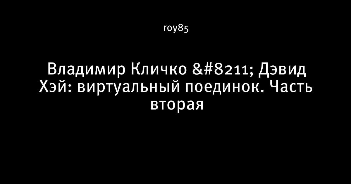 Владимир Кличко – Дэвид Хэй: виртуальный поединок. Часть вторая