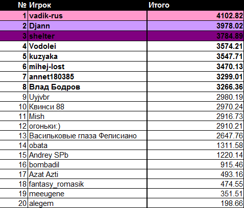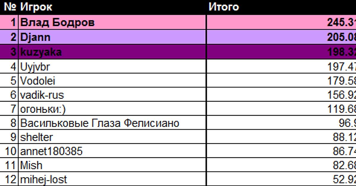 2 июля 2018, 20:37 Победитель 11 недели: Влад Бодров Этот пост написан пользователем Sports.ru, начать писать может каждый болельщик (сделать это можно здесь). Победителем турнира в Истбурне становится Влад Бодров! Чемпионская гонка 2018 Парный разряд общий зачёт Автор Mish Этот пост опубликован в блоге на Трибуне Sports.ru. Присоединяйтесь к крупнейшему сообществу спортивных болельщиков! Другие посты блога Фентези-теннис WTA Фэнтези