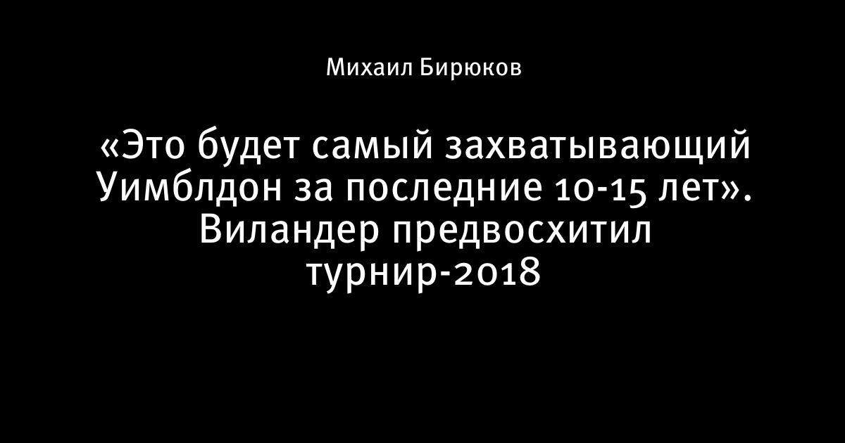 «Это будет самый захватывающий Уимблдон за последние 10-15 лет». Виландер предвосхитил турнир-2018