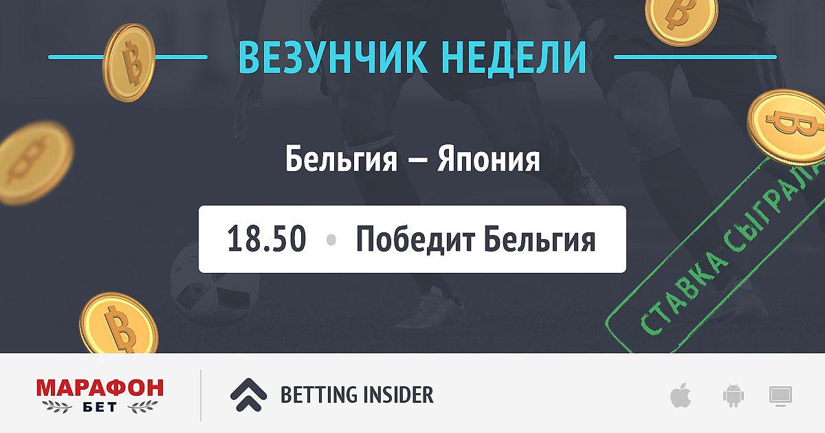 Первая стадия плей-офф ЧМ-2018 подарила нам несколько ярких и напряженных противостояний, развязка в которых наступала в самом конце. Одним из таких матчей явился поединок между Бельгией и Японией, в котором бельгийцы горели 0:2, а потом смогли перевернуть игру в свою пользу, забив победный мяч на последней минуте компенсированного времени. Пользователь Миша Огорелков в лайве поймал кэф 18.50 на победу бельгийцев.
