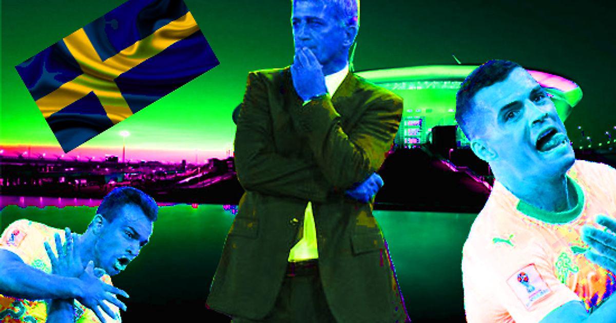 При владении мячом и попытках пройти три оборонительных шведских редута команда Петковича перестраивалась на игру в трёх центральных защитников - на одну линию с Джуру и Аканджи опускался Бехрами. Немного повыше бегал и пытался открываться Джака. Фланговые защитники поднимались высоко, создавая ширину.