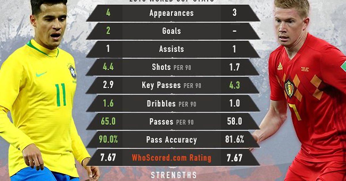 Сравнение Коутиньо и де Брюйне на ЧМ 2018 от WhoScored