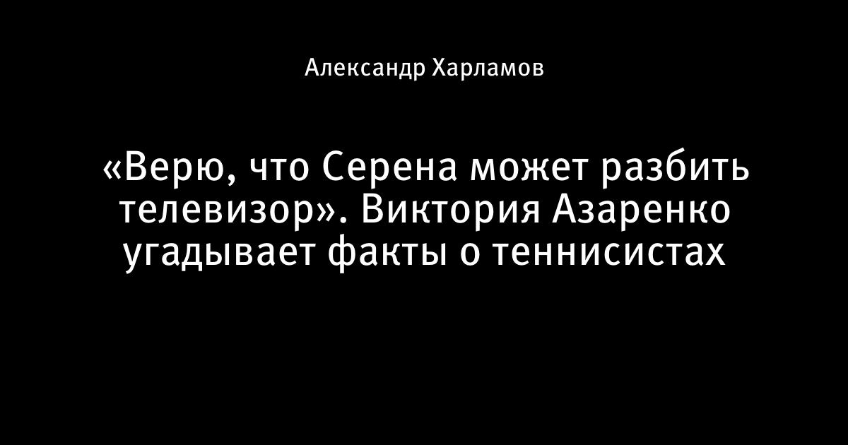 «Верю, что Серена может разбить телевизор». Виктория Азаренко угадывает факты о теннисистах