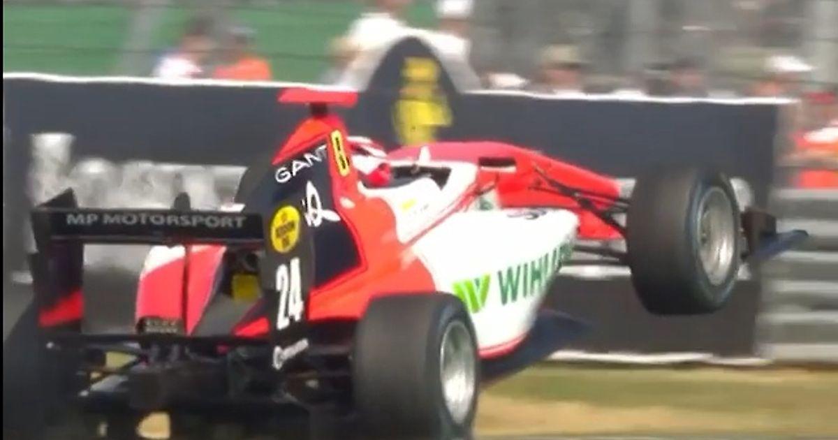 Болид из GP3 встал на дыбы. И проехал целую прямую во время гонки