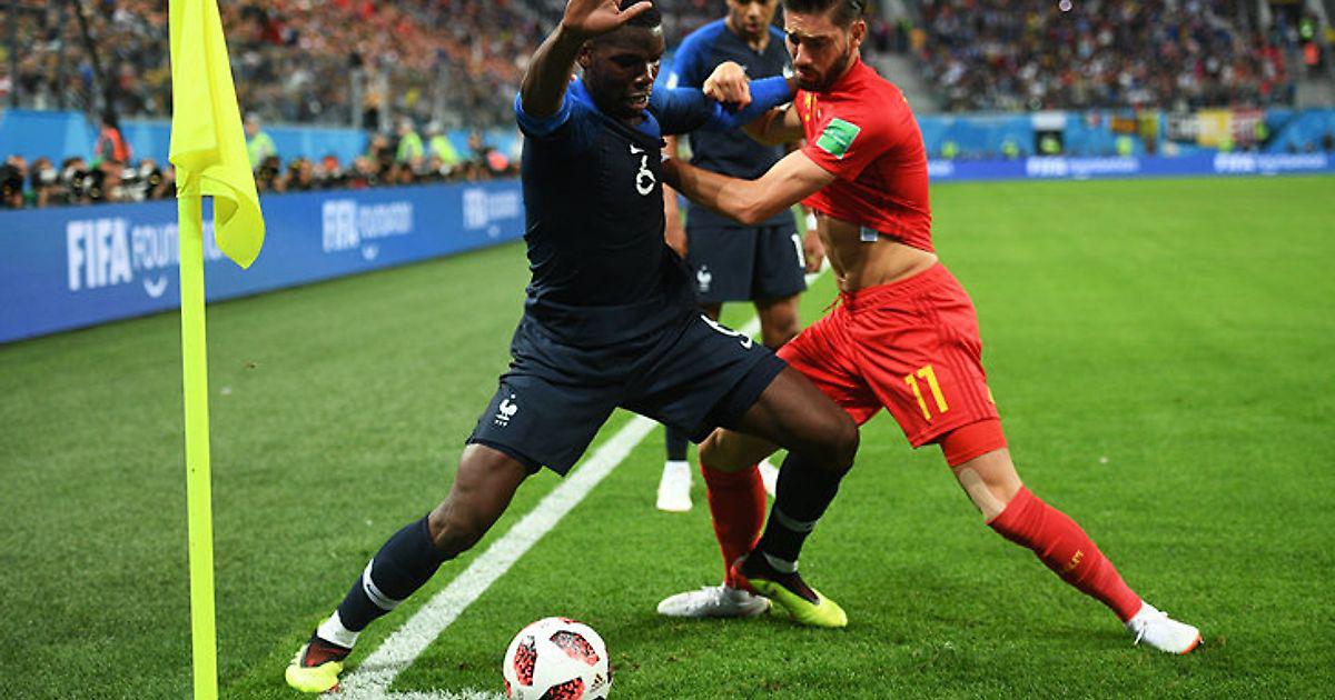 В первые полчаса картина была равной. Атакующий план Бельгии не работал, но без мяча они контролировали Францию, которая не могла начинать атаки через Погба и не хотела активно задействовать крайних защитников. К 30-й минуте было 3:3 по ударам и 42% на 58% по владению в пользу Бельгии. С 30-й до гола Самюэля Умтити – 10:1 по ударам в пользу Франции и 35% на 65% в пользу Бельгии по владению.