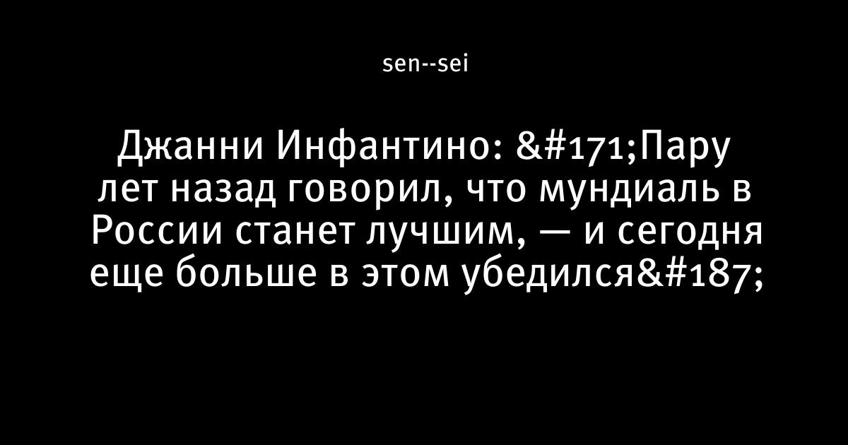 Джанни Инфантино: «Пару лет назад говорил, что мундиаль в России станет лучшим, — и сегодня еще больше в этом убедился»