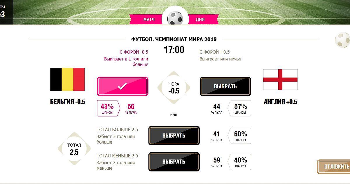 В матче за бронзу сойдутся Бельгия и Англия. Бельгия смотрится предпочтительнее; у британцев было меньше времени на восстановление, и к тому же они и сами не скрывают, что деморализованы обидным поражением от хорватов. Плюс, вспомним, что на этом ЧМ бельгийцы уже смогли один раз выиграть у англичан. Естественно, в новом ТОТО-15 есть эта игра, причем в "Матчах дня" (угадав форы на три матча дня вы уже не окажетесь в минусе). Моя ставка - бельгийцы выиграют с любым счетом, плюс закрываю позиции тотал меньше и тотал больше 2,5.