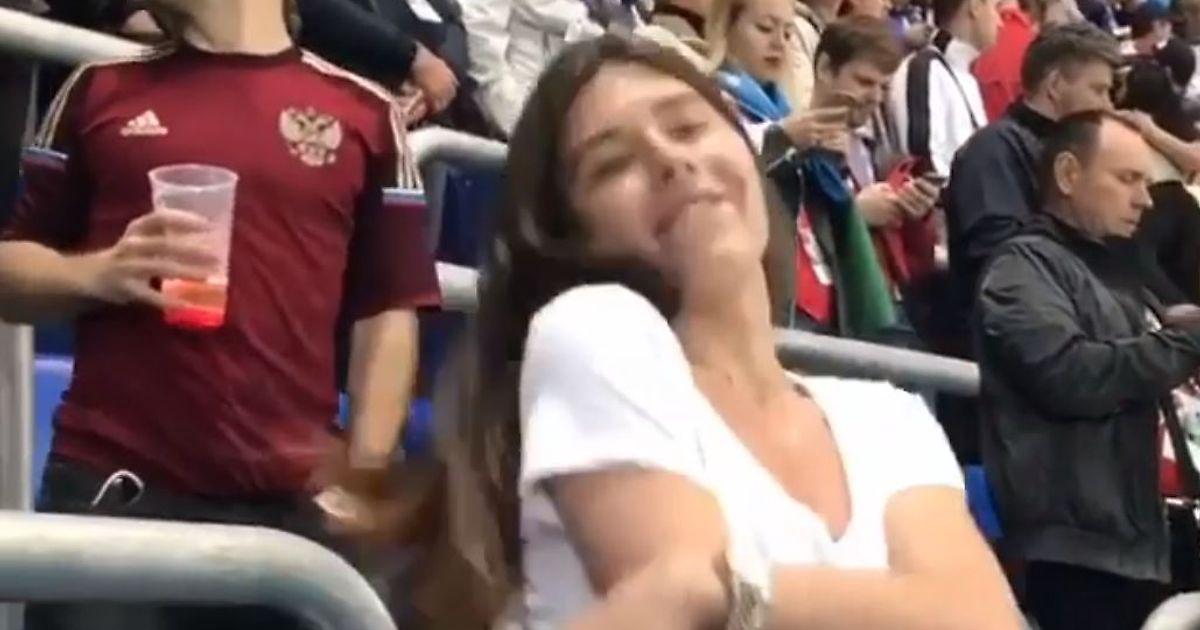 По-моему она это сделала специально для раскрутки своей "личности", если бы она без камер фантанировала эмоциями и её сняли изподтишка, то вопросов бы не было , а так очередная кура пиарится на мировом событии и наверняка не понимает футбол.